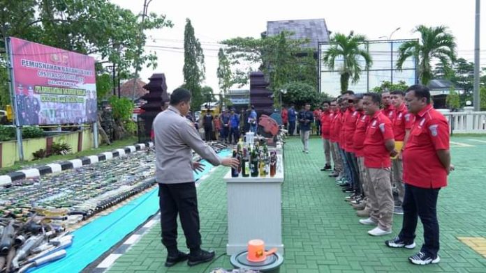 ”Ada beberapa barang bukti yang berhasil diamankan dengan kriteria antara lain, knalpot brong, minuman keras, obat-obatan keras, narkotika jenis sabu dan ganja, serta berikutnya ialah petasan,” kata AKBP Maruly Pardede.