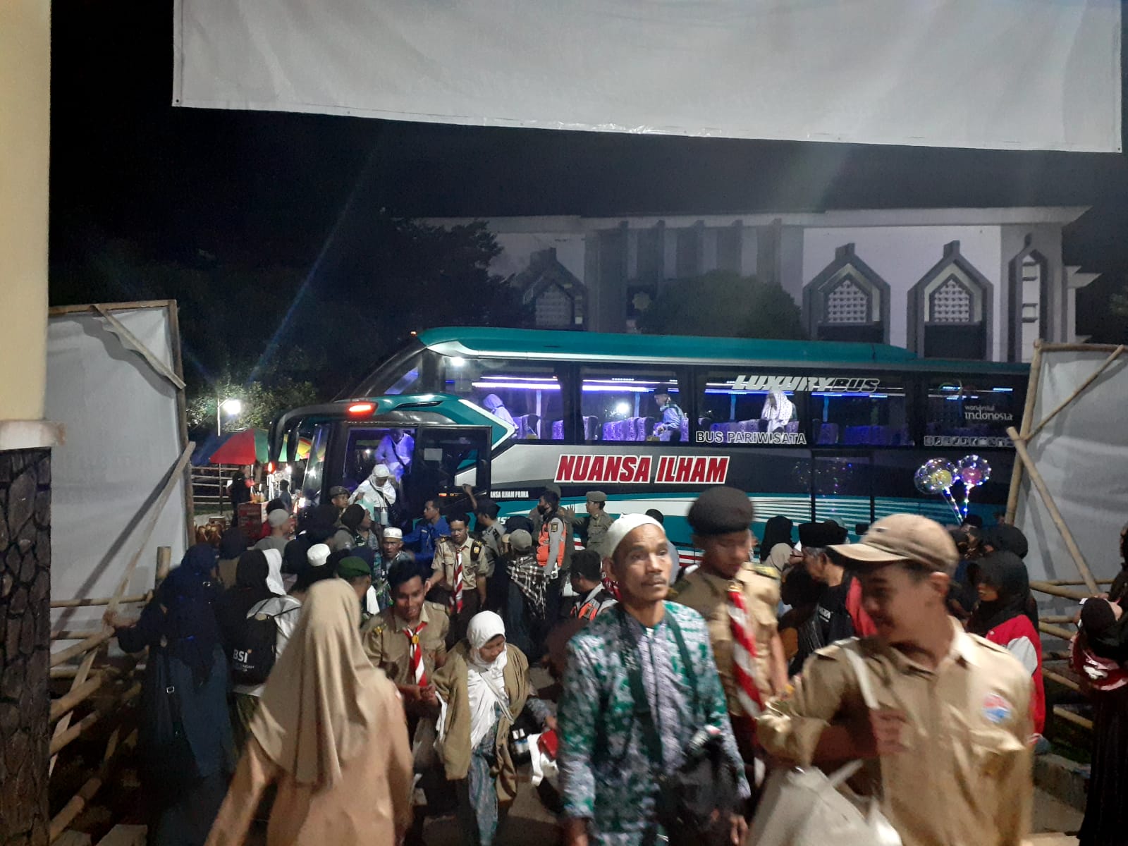 REPORTIKANEWS.COM-Sebanyak 374 jamaah haji Kabupaten Sukabumi Jawa Barat, Kloter 22 tiba di Pusdangbai, Desa Sukamulya, Kecamatan Cikembar, Kamis (13/7/23) pukul 21.00 WIB.