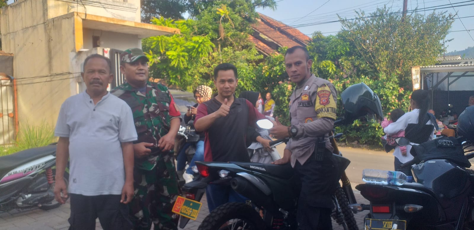 Kegiatan sinergitas TNI/POLRI Bhabinkamtibmas Kelurahan Sindangsari Bripka Faizal dan Bhabinsa Sindangsari Serma Hendiyana menyampaikan himbauan Kamtibmas kepada warga Kp.Limusnunggal Rt 01/06 Kecamatan Lembursitu terkait kenakalan remaja maupun bencana alam dan pencegahan aksi kelompok berandal motor.