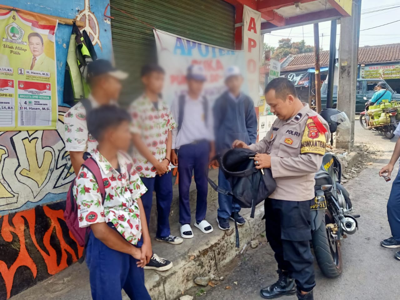 Antisipasi tawuran antar pelajar,/Anggota Samapta Polsek Lembursitu melakukan Himbauan kepada para pelajar yang didapati Masih berkerumun dijalan setelah usai pulang sekolah.