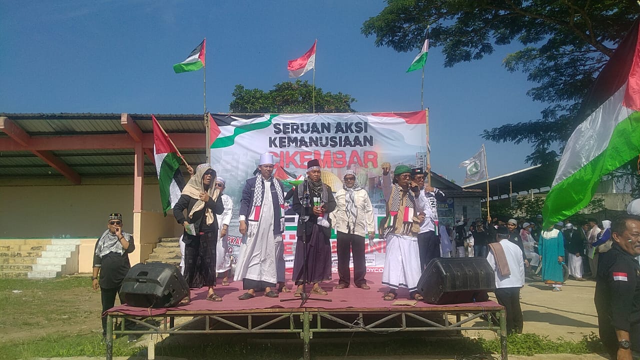 “Saya ucapan terimakasih kesemua nya baik dari Forkopimcam semua organisasi masyarakat kepemudaan semua lapisan masyarakat yang sudah mendukung aksi bela Palestina yang hadir kita perkirakan yang hadir pada kesempatan ini 10 ribu jemaah dari berbagai kalangan,” katanya, Minggu (19/11).