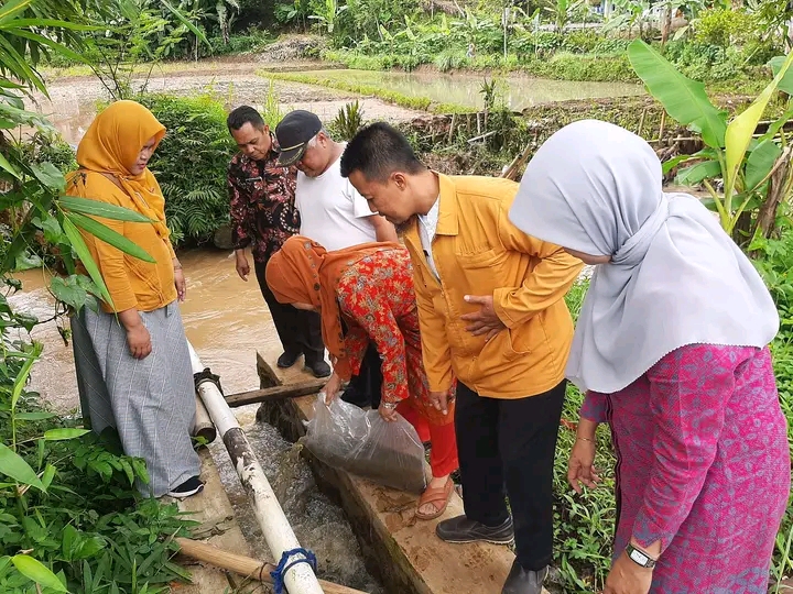 REPORTIKANEWS.COM-Dinas Perikanan Kabupaten Sukabumi Jawa Barat, tebar bibit Ikan di Sungai Cipamatutan dan Intervensi Penanganan Stunting di Kecamatan Bojonggenteng, Jumat (01/12/23).