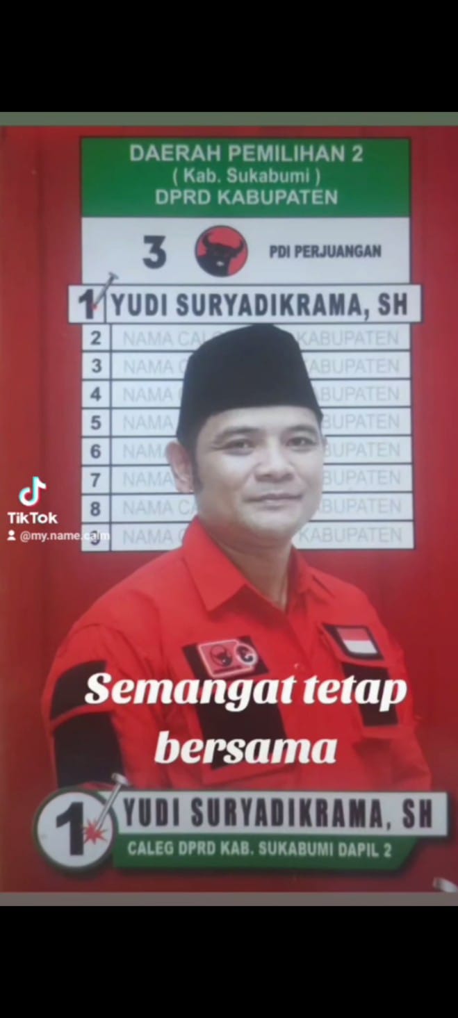 REPORTIKANEWS.COM – Nama yudi suryadikrama semakin menguat di dapil 2 Kabupaten Sukabumi, yudi suryadikrama yang merupakan anggota dewan dari fraksi PDI perjuangan akan kembali mencalonkan yang ke dua kalinya atas dorongan dan harapan masyarakat, kedekatan dan ke akrab yudi suryadikrama dengan lapisan masyarakat sudah bukan rahasia lagi, disela kesibukannya sebagai anggota dewan, yudi suryadkrama juga aktif di kegiatan kemasyarakatan dan pengajian pengajian, Sabtu (10/12/2023).