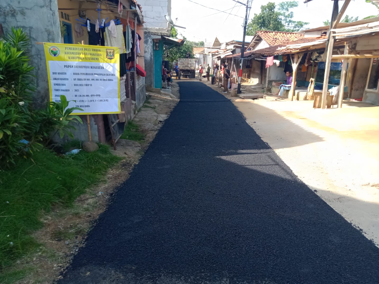 Saat di konfirmasi Kepala Desa Ubrug Periode 2023-2029 Deri Sopiar mengatakan, pihaknya pembangunan yang direalisasikan tersebut diantaranya, Pengaspalan Jalan di Kampung Ubrug dengan anggaran sebesar Rp. 120.391.000,- menggunakan Dana Desa Tahap III tahun 2023.