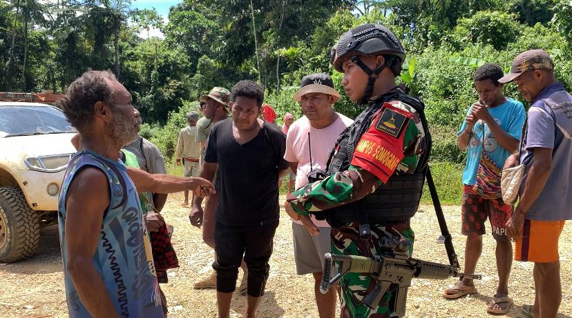 REPORTIKANEWS.COM – Pos Somografi Satgas Yonif 310/KK mediasi dan hentikan pemalangan jalan yang disertai ancaman menggunakan senjata tajam yang dilakukan oleh Isak Sam (52) kepada pegawai proyek pembangunan SD YPPK Akarinda di Kampung Somografi, Distrik Web, Kabupaten Keerom, Selasa (19/12/23).