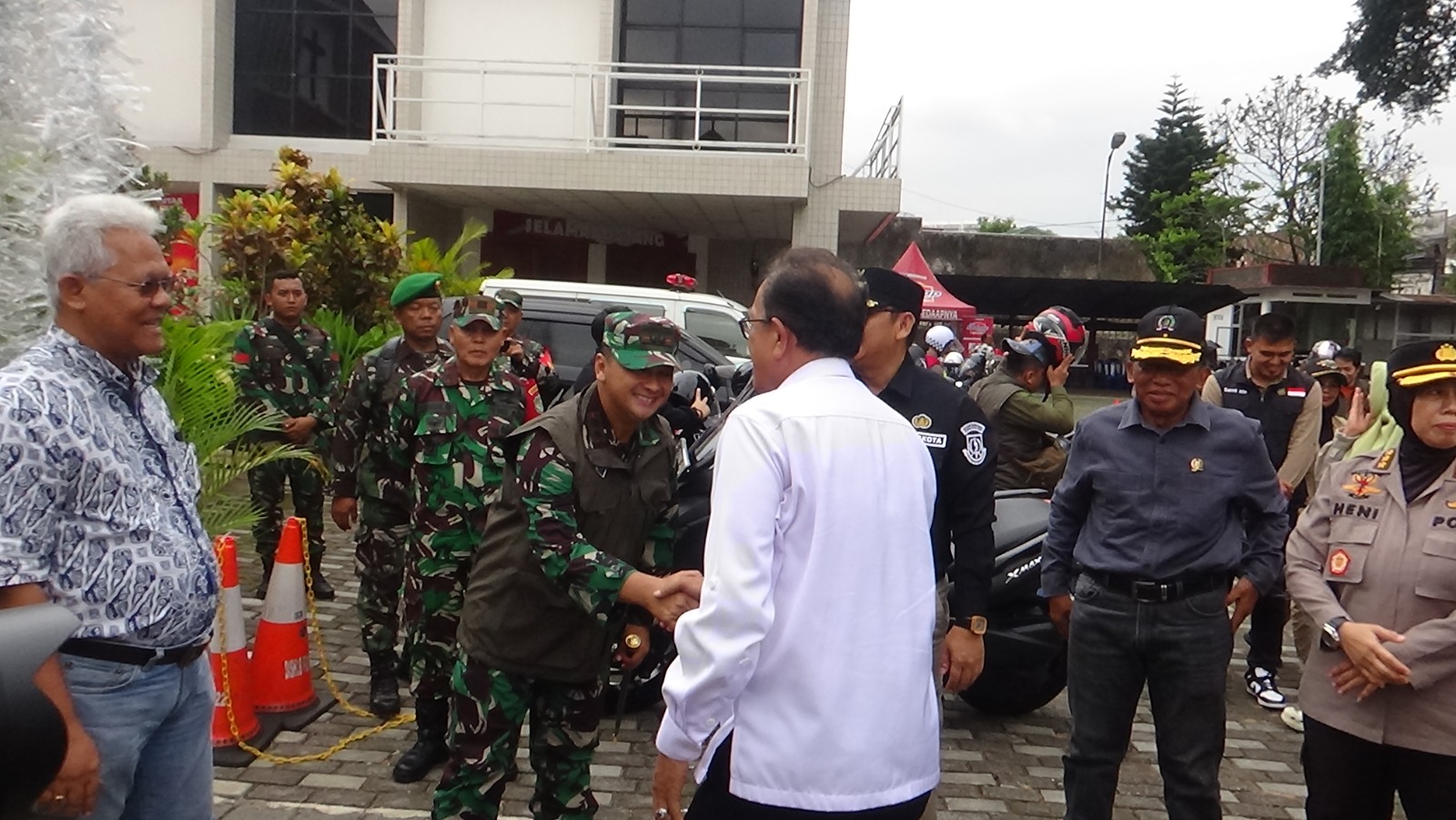 REPORTIKANEWS.COM – Komandan Kodim 0607/Kota Sukabumi Letkol Inf Yudhi Hariyanto, mendampingi Kapolres Sukabumi Kota AKBP Ari Setyawan Wibowo dan Pj. Wali Kota Sukabumi Kusmana Hartadji, melakukan pengecekan kesiapan perayaan Natal di berbagai gereja di Kota Sukabumi, Minggu (24/12/23).