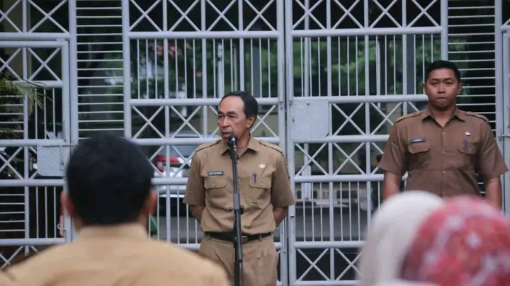 SUKABUMI, Reportikanews.com_Sekretaris Daerah (Sekda) Kabupaten Sukabumi H. Ade Suryaman pimpin apel pagi lingkup Sekretariat Daerah di Pelataran Kantor Setda, Palabuhanratu, Senin (6/1/25).
