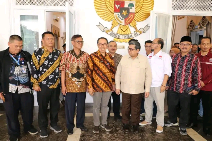 Kedatangan Ketua BPJPH bersama jajarannya disambut langsung Sekda Kabupaten Sukabumi H. Ade Suryaman di Pendopo Sukabumi.