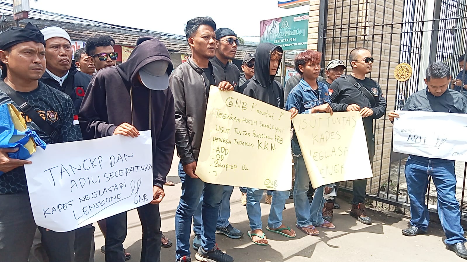 SUKABUMI, REPORTIKANEWS.com-Sejumlah masa dari Dewan Pimpinan Cabang (DPC) Jampang Tandang Makalangan (JTM) menggelar aksi di Kejaksaan Negeri Cibadak Kabupaten Sukabumi, Menuntut Aparat Penegak Hukum (APH) segara menindak Kepala Desa Neglasari, yang dinilai sudah menyelewengkan Dana Desa (DD) dan meminta Kepala Desa Neglasari mundur dari jabatannya, Rabu (12/02/2025).