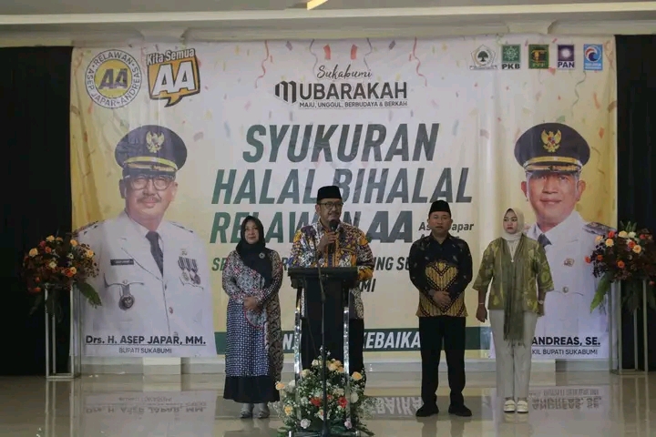 REPORTIKANEWS.com – Bupati Sukabumi H. Asep Japar dan Wakil Bupati H. Andreas penuh mubarokah hadiri acara Halal Bihalal Relawan 02, yang digelar di Gedung Sulanjana Jalan Salabintana Kabupaten Sukabumi, Senin (7/4/2025).