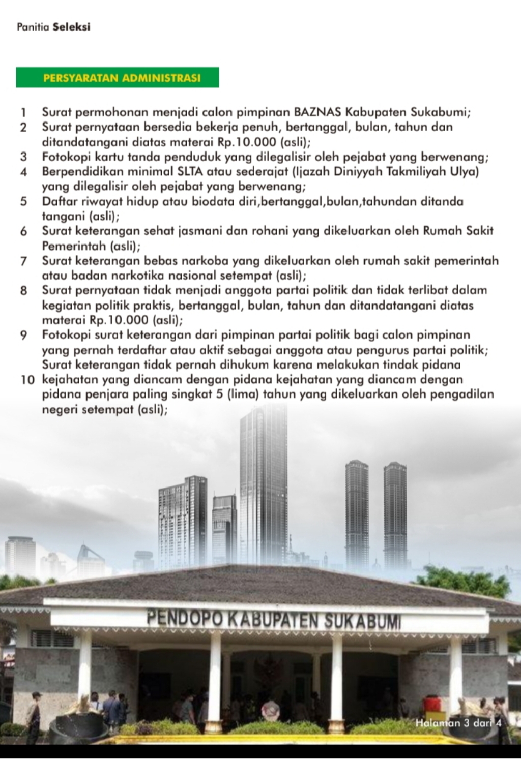 PENDAFTARAN SELEKSI CALON PIMPINAN BAZNAS KABUPATEN SUKABUMI 2025-3030 :