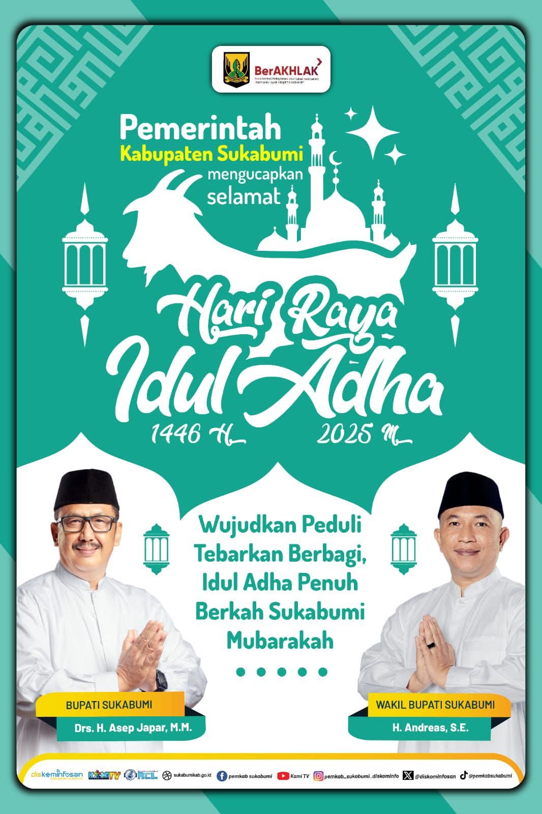REPORTIKANEWS.COM – Pemerintah Daerah Kabupaten Sukabumi mengucapkan Selamat Hari Raya Idul Adha 1446 Hijriyah/6 Juni 2025 Masehi.