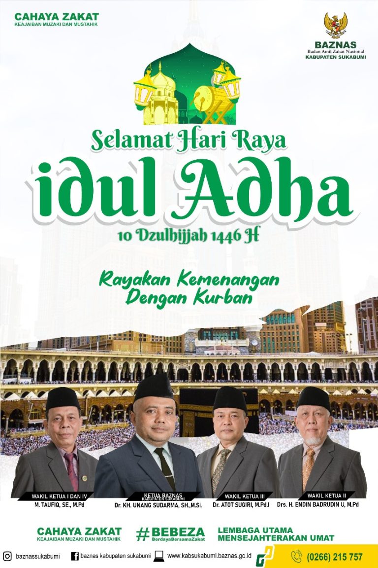 REPORTIKANEWS.COM – Keluarga besar Badan Amil Zakat Nasional (Baznas) Kabupaten Sukabumi, Mengucapkan Selamat Hari Raya Idul Adha 10 Dzulhijjah 1446 Hijriyah 06 Juni 2025 Masehi.