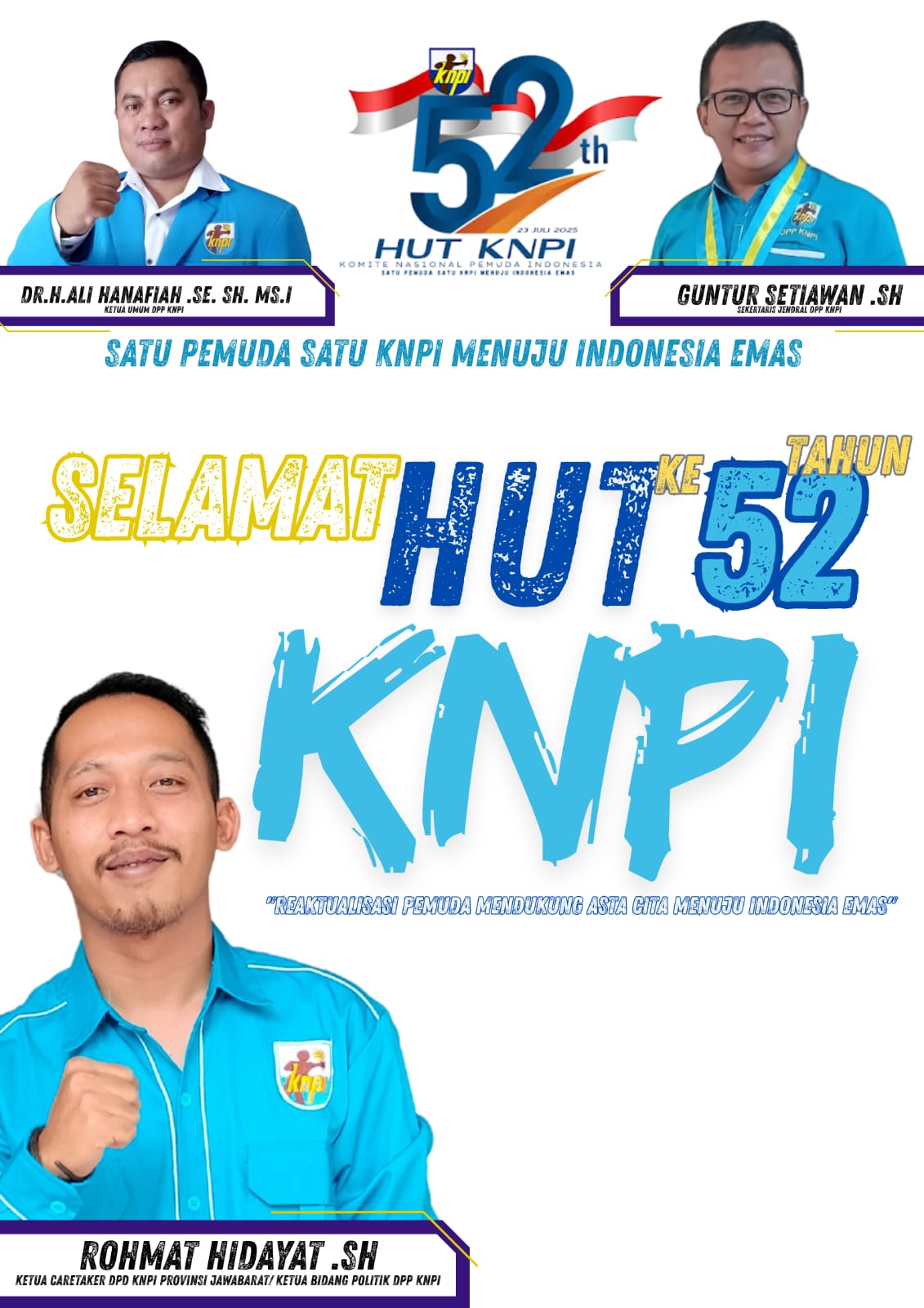 REPORTIKANEWS.COM – Dewan Pengurus Daerah Komite Nasional Pemuda Indonesia (DPD KNPI) Provinsi Jawabarat di bawah besutan ketua caretaker Rohmat Hidayat menujuk langsung Ahmad Jamaludin menjadi ketua Caretaker DPD KNPI Kabupaten Sukabumi, Kamis (24/7/2025).