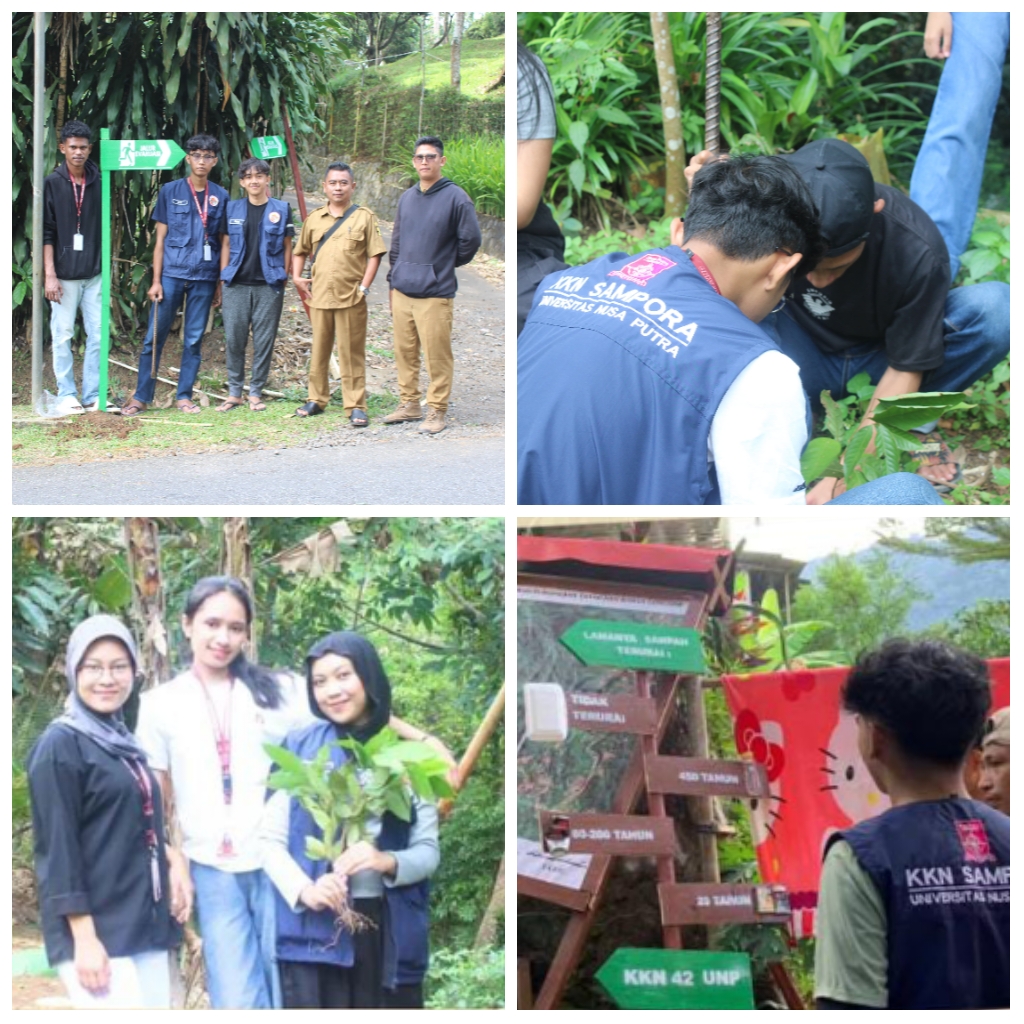 REPORTIKANEWS.COM, SUKABUMI – Para mahasiswa kelompok Kuliah Kerja Nyata (KKN) Universitas Nusa Putra periode Agustus 2025, turun langsung untuk membantu masyarakat melalui program pemetaan wilayah rawan longsor, pemasangan jalur evakuasi, dan penanaman bibit pohon dititik-titik kritis wilayah Dusun Sampora, Kecamatan Cikidang, Kabupaten Sukabumi.