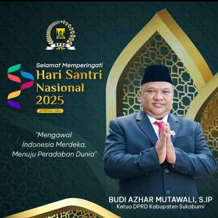 REPORTIKANEWS.COM, SUKABUMI – Ketua DPRD Kabupaten Sukabumi, H. Budi Azhar Mutawali, S.IP, menghadiri Upacara Peringatan Hari Santri Tingkat Kabupaten Sukabumi Tahun 2025. Acara tersebut diselenggarakan di Stadion KORPRI Gelanggang Cisaat pada Rabu, (22/10/2025).