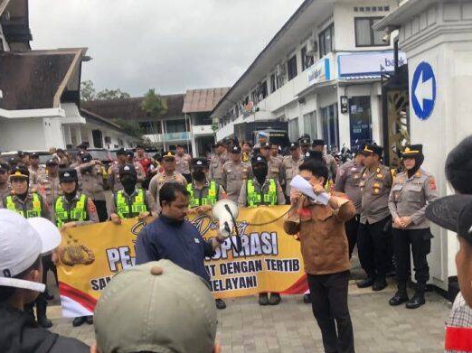 SUKABUMI – Sejumlah massa yang tergabung dalam Forum Komunikasi dan Diskusi Mahasiswa (FKDM) Sukabumi menggelar aksi unjuk rasa di depan Balai Kota Sukabumi, Kamis (12/2/2026).