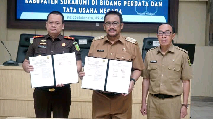 Dalam kesempatan tersebut, dilaksanakan penandatanganan kerja sama antara Pemerintah Kabupaten Sukabumi dan Kejaksaan Negeri Kabupaten Sukabumi terkait penyelenggaraan kegiatan pemerintah daerah di bidang perdata dan tata usaha negara.